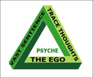 The human psyche can be understood as a conglomerate of three heterogeneous information systems: a vast consciousness involving at least 10 trillion cells forming countless permutations of communication, a few fleeting thoughts in moments of self-awareness and the ego. The ego occurs with self-awareness and is the active interface or intermediary of the vast general sentience and the trace self-awareness. It is the friction that occurs with change of state and can be understood as entropy of information- in particular the loss of information connecting the psyche to reality. Thus the ego is characterized by denial of The Conservation Principle of Energy i.e. the continuous universal transformation.