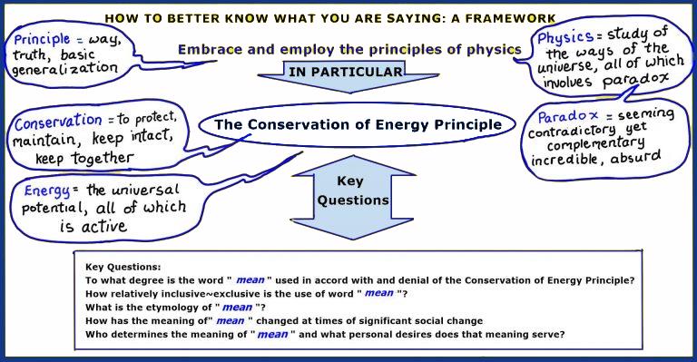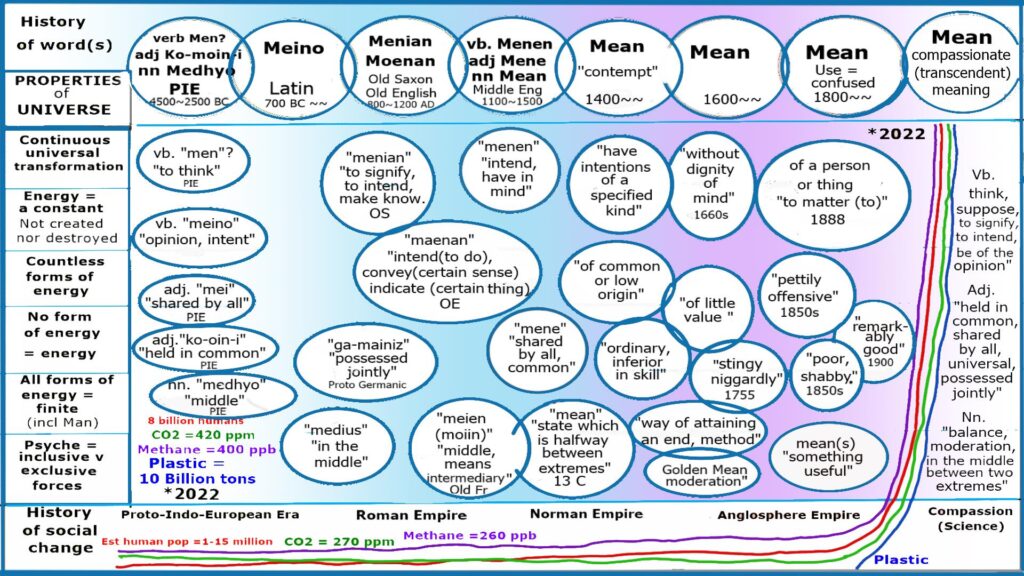 We use the word “mean” constantly and assume we know what we are saying. This website is about “meaning” – the meaning of words in particular and yet few of us reflect on what we are really saying. The ego ( the “I”) assures us that “I know what I am saying. Everyone knows what I mean when I use a word”. Meanwhile compassion reminds us we are mere element of the universal potential and we can never truly know what we are saying. Our human condition is such that we can only endeavour to ensure our use of words is transcendent and in accord with the principles of physics.