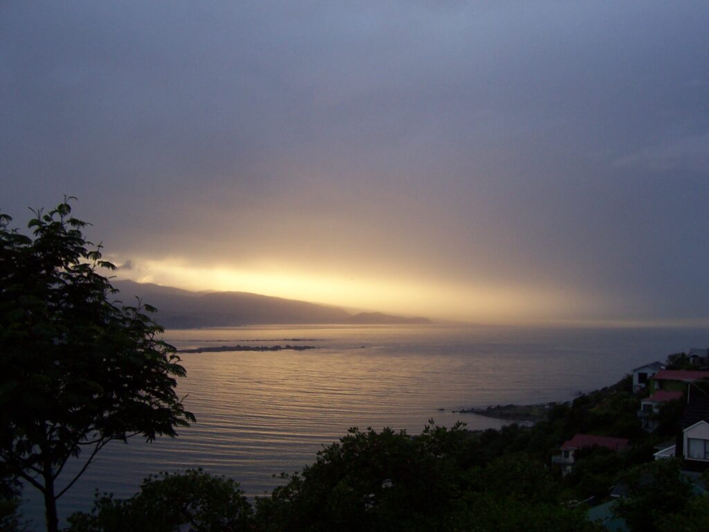 The next moment the veils of rain transform into pure white light, dancing with their radiant reflections in the waters of the bay.