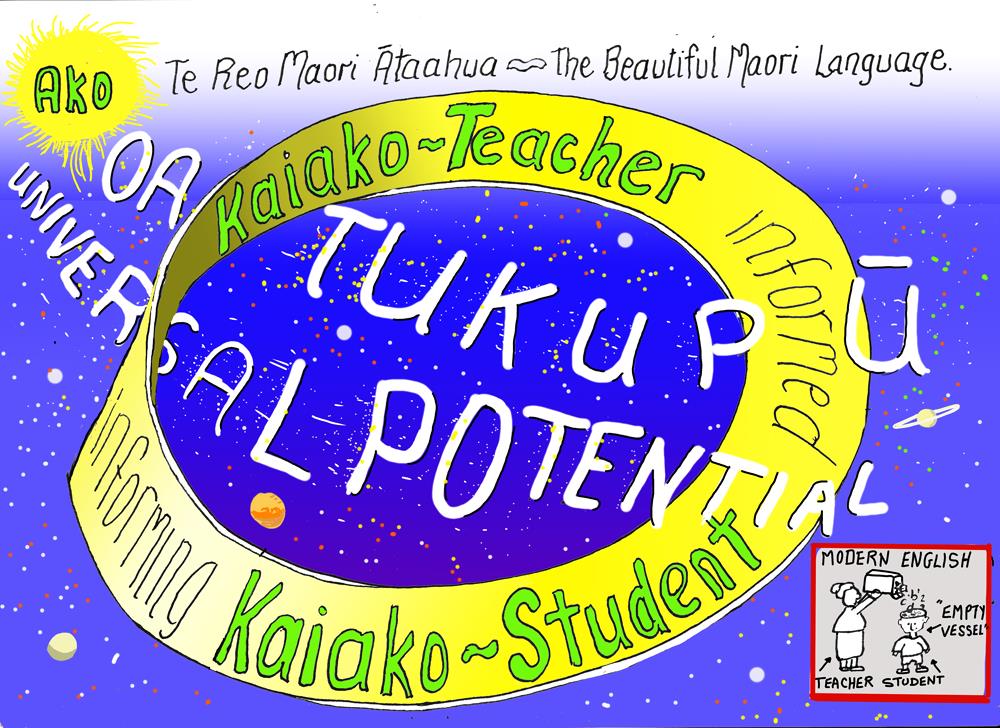 Ako” in te reo Maori is more holistic in that “kaiako” transcends the teacher-student paradox. This is reflected in the belief the child comes rich in the wisdom of the ancestors, wisdom that informs our language and lifestyle so these conserve the flows and balances of Earth that will sustain generations yet unborn.