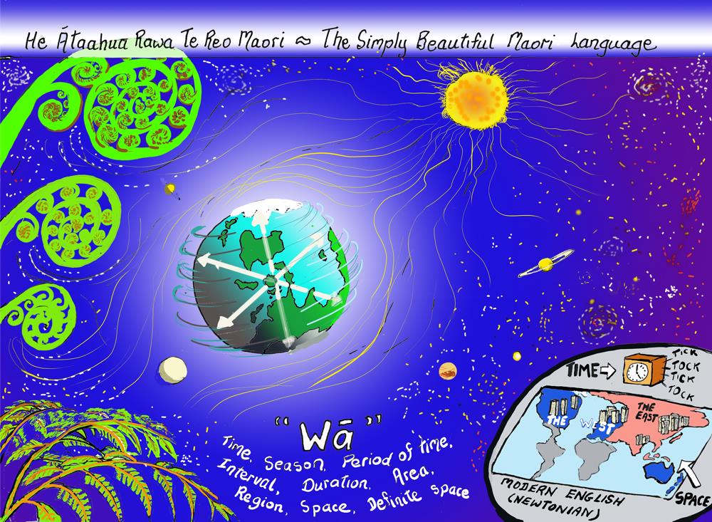 “Wa” means time, space, period, area, interval, region and season. This te reo Maori speaks of multi-dimensions and reminds us of their fundamental unity. The word “Wa” beautifully transcends both this great paradox of measure and the limitations of the ego. And in as much as it does so, it reminds us in harmony with all the flows and balances of the universe that sustain humankind.