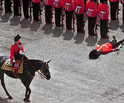 Thus we have the phenomenon to this day of soldiers keeling over in dead faints when they are stood to attention for extended periods.