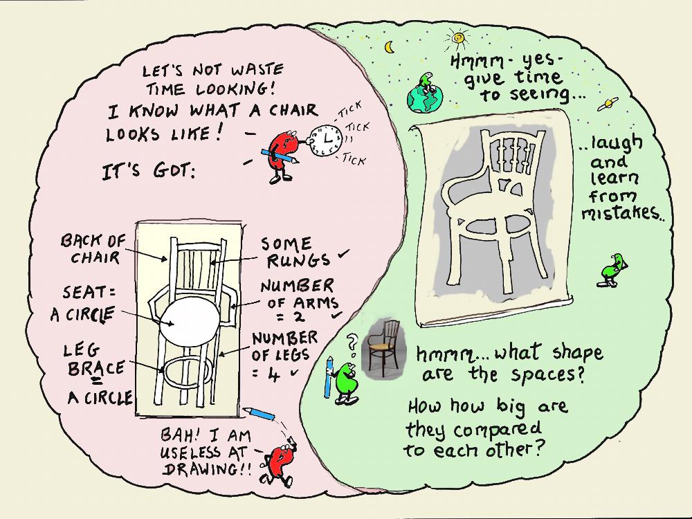 The simple act of drawing the “negative space” of a simple chair taught me more in ten minutes about the disciplines of psychology and physics than had all my Science, Physics and Psychology teachers and professors in hundreds of hours lessons and lectures during my decade at college and university. Suddenly all their information, which had been so meaningless and sterile to me, now made wonderful sense at last. They had no way of communicating that we are all paradoxical beings.