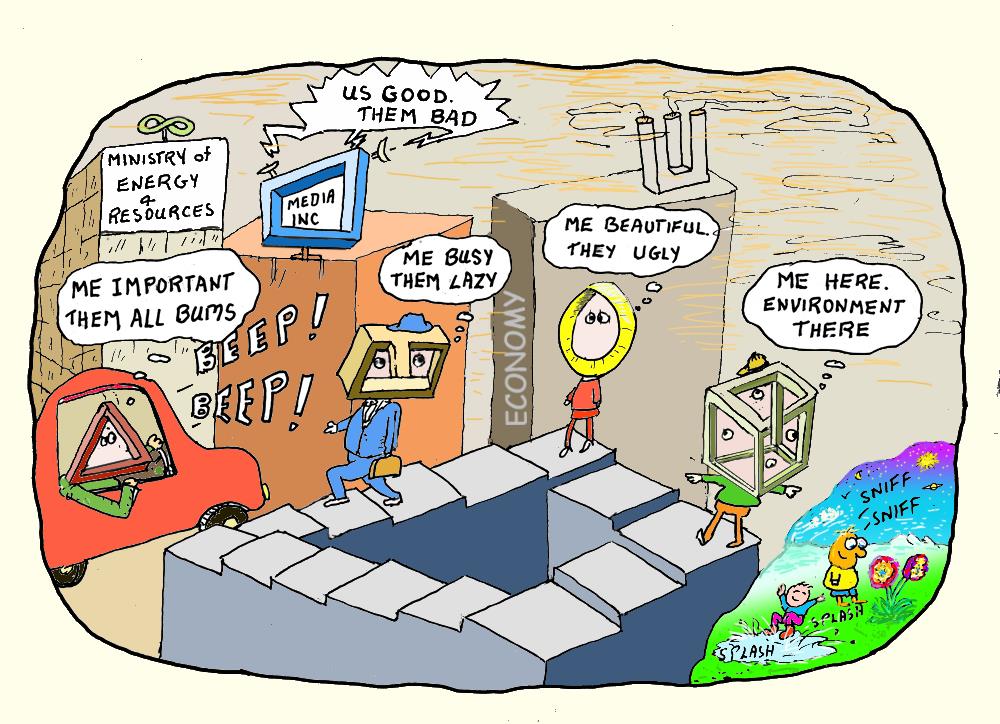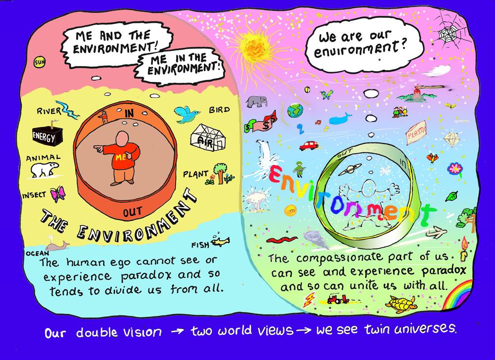 Similarly this more ego-derived world view is manifest in our notion of what constitutes the “environment“. The “environment” is experienced as that which is separate and alien to us rather than as a vital, interactive state of being.