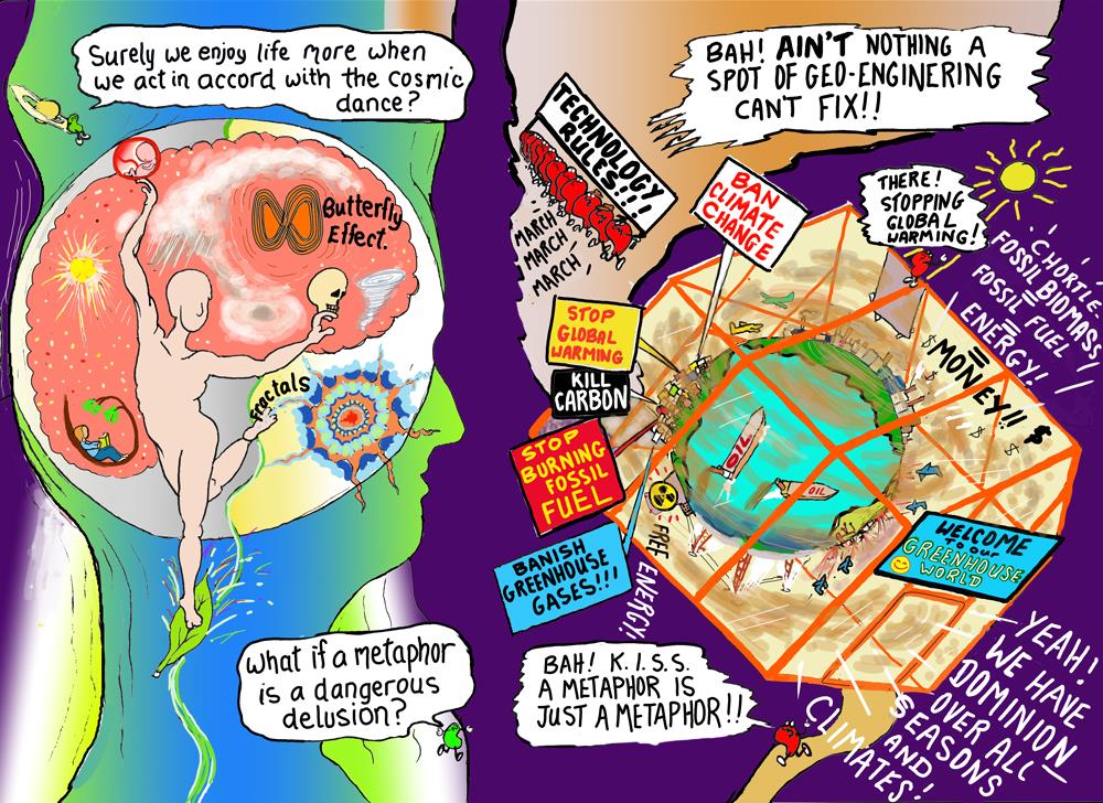 For instance, a new global religion has emerged this past two centuries in conjunction with the English Combustion Revolution – the radical belief of some humans that it is their divine right to burn mineral biomass at their will. It has its own unique ego-derived language and symbolizes Earth’s atmosphere as “a greenhouse world” that they can geoengineer at their will.